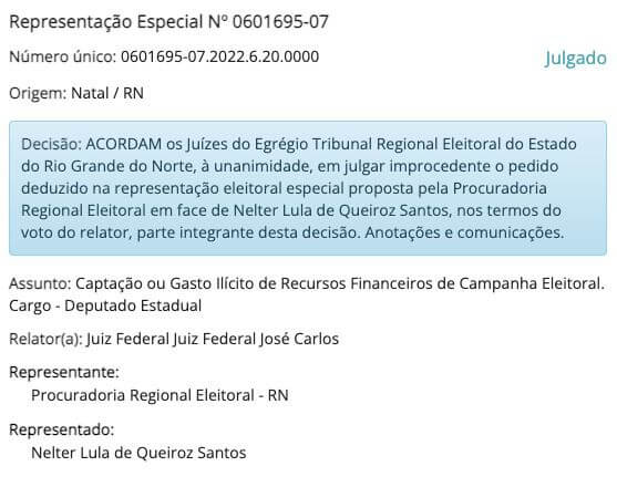 A acusação, feita pelo Ministério Público Eleitoral do Rio Grande do Norte (MPRN), não foi comprovada de acordo com o relator do processo no TRE-RN, juiz federal José Carlos, e foi acompanhado por unanimidade pelos demais membros do Tribunal.