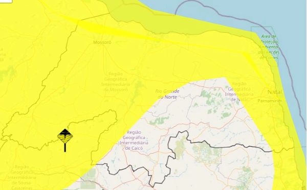 O Instituto Nacional de Meteorologia (Inmet) emitiu dois alertas amarelos (que indicam perigo potencial de chuvas para mais de 140 cidades do Rio Grande do Norte. Os informes, emitidos em dias e horários distintos, apontam que cidades listadas podem sofrer com precipitações de até 50 milímetros ao dia.