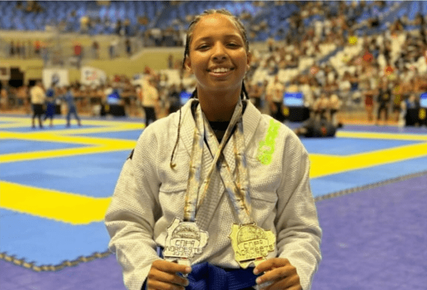 Joice Kelly, que é natural de Caiçara do Norte, trouxe para casa duas medalhas na Copa Nordeste de Jiu-Jitsu 2025, que aconteceu no último domingo, 13 de abril, no Ginásio Nélio Dias, em Natal. Ela ganhou uma medalha de ouro e outra de prata.