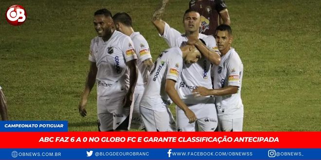 O ABC goleou o Globo FC por 6 a 0 na noite desta quarta-feira, na abertura da sexta rodada do Campeonato Potiguar. O resultado valeu a classificação antecipada para a segunda fase. Os gols da vitória no Estádio Frasqueirão foram marcados por Raphael Luz (2), Maycon Douglas (2), Allan Dias e Afonso.
