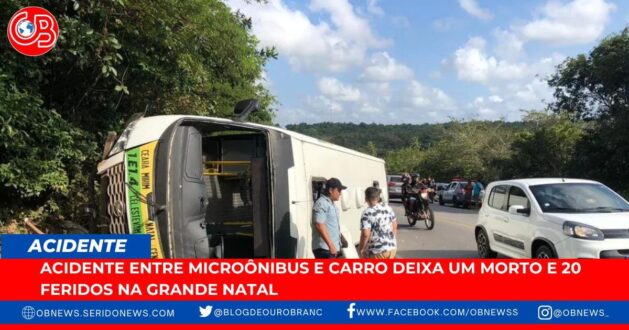 Uma colisão frontal entre um microônibus e um carro deixou uma pessoa morta e pelo menos 20 feridos na manhã desta quinta-feira (22) na BR-406, entre os municípios de São Gonçalo do Amarante e Ceará-Mirim, na Grande Natal.