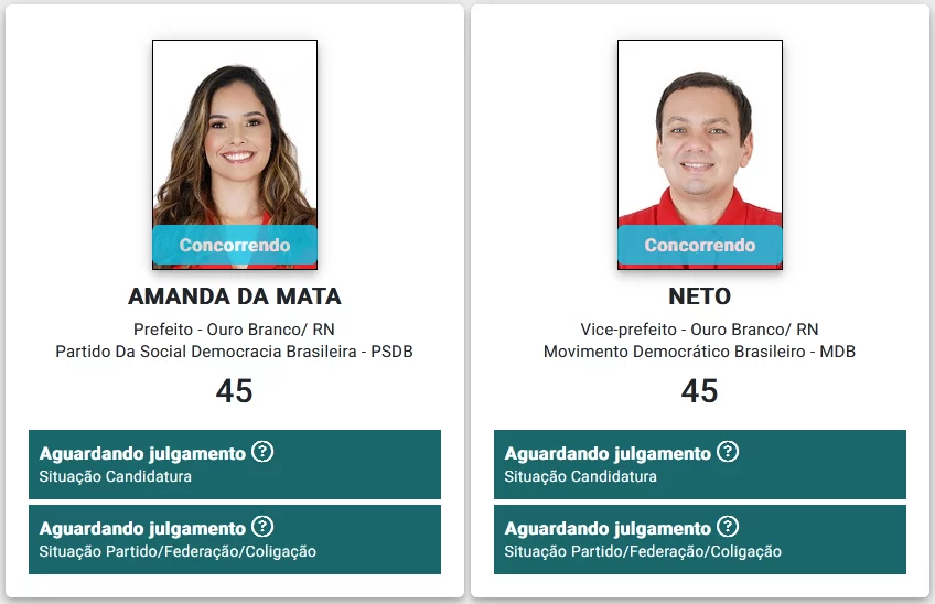 O sistema também já exibe os pedidos de registros de candidatura a vereadoras e vereadores pela Federação PSDB Cidadania dos candidatos: Segundo (nº 45 444), Tiririca (nº 45 000), Marcos Costa (nº 45 555), Lucas Batista (nº 45 333), Dedé (nº 45 666), Maiza (nº 45 123), Magui (nº 45 678), e Jeane Wanderley (nº 45 222), escolhidos em convenção histórica realizada no último dia 5 de agosto.