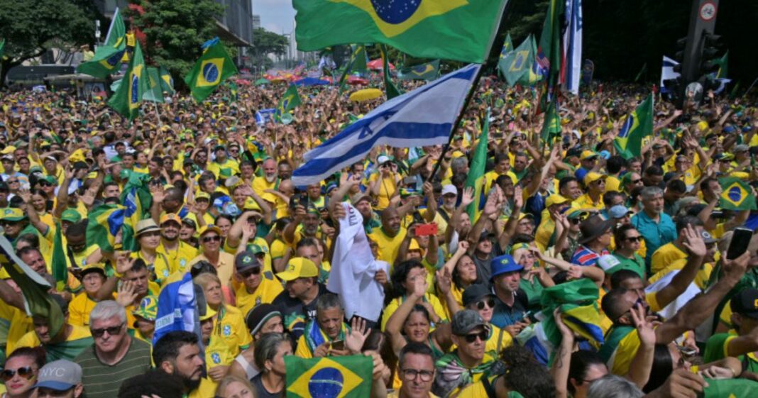 Apoiadores de Jair Bolsonaro (PL) realizam um ato neste domingo (25) na Avenida Paulista, em São Paulo, em defesa do ex-presidente, que é investigado pela Polícia Federal (PF) por uma suposta tentativa de golpe de Estado. Os manifestantes foram ao ato vestidos de verde e amarelo e com bandeiras do Brasil e de Israel. Diferente de outras manifestações bolsonaristas, faixas e cartazes com ataques ao Supremo Tribunal Federal (STF) não foram identificados pela reportagem.