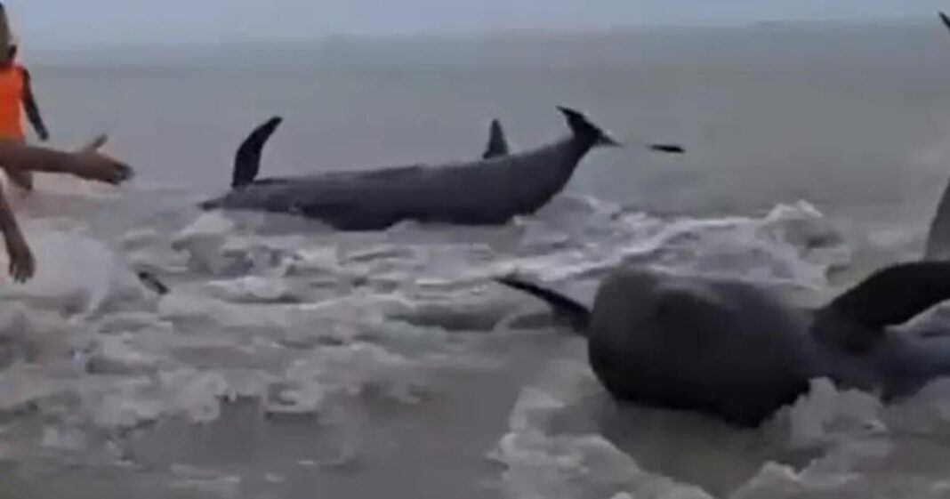A praia de Pititinga, em Rio do Fogo, litoral Norte do Rio Grande do Norte, foi palco de um novo encalhe de baleias neste domingo 2. Desta vez, estima-se que 21 animais da espécie baleia-piloto tenham encalhado na região.
