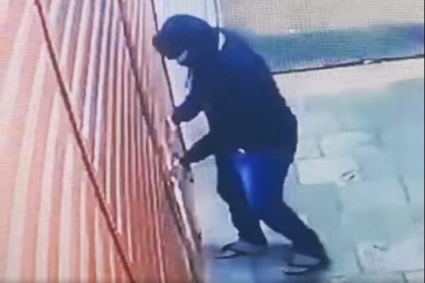 A tentativa de arrombamento ocorreu na madrugada dessa quarta-feira (28. abril. 2021), a ação do bandido foi registrada por uma câmera de segurança.