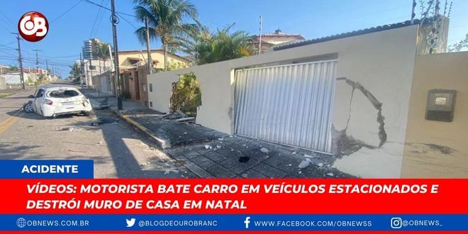 Um motorista que dirigia um carro em alta velocidade bateu em veículos estacionados em uma pousada e destruiu o muro de uma casa minutos depois na Zona Sul de Natal, na noite desta quinta-feira (9).