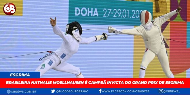 A brasileira Nathalie Moellhausen conquistou, neste domingo, a medalha de ouro na espada feminina no Grand Prix de esgrima em Doha, no Catar. A campeã mundial de 2019 venceu seis jogos da chave principal do torneio e levou o inédito título para o país.