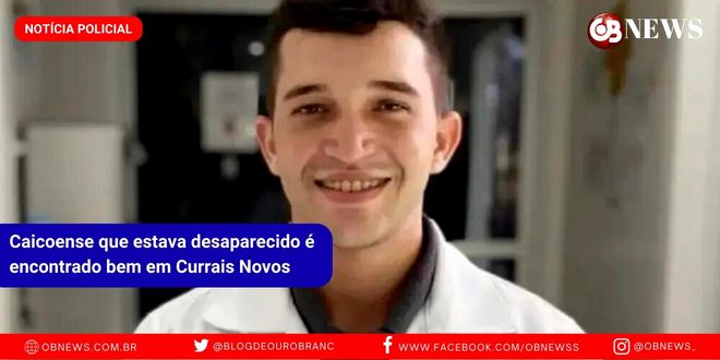 O caicoense, Lucas Pereira, de 22 anos, que estava desaparecido desde o sábado (17), foi encontrado na tarde desta terça-feira (20), em Currais Novos (RN). Ele estava em uma pousada e foi localizado pela Polícia Militar da cidade.