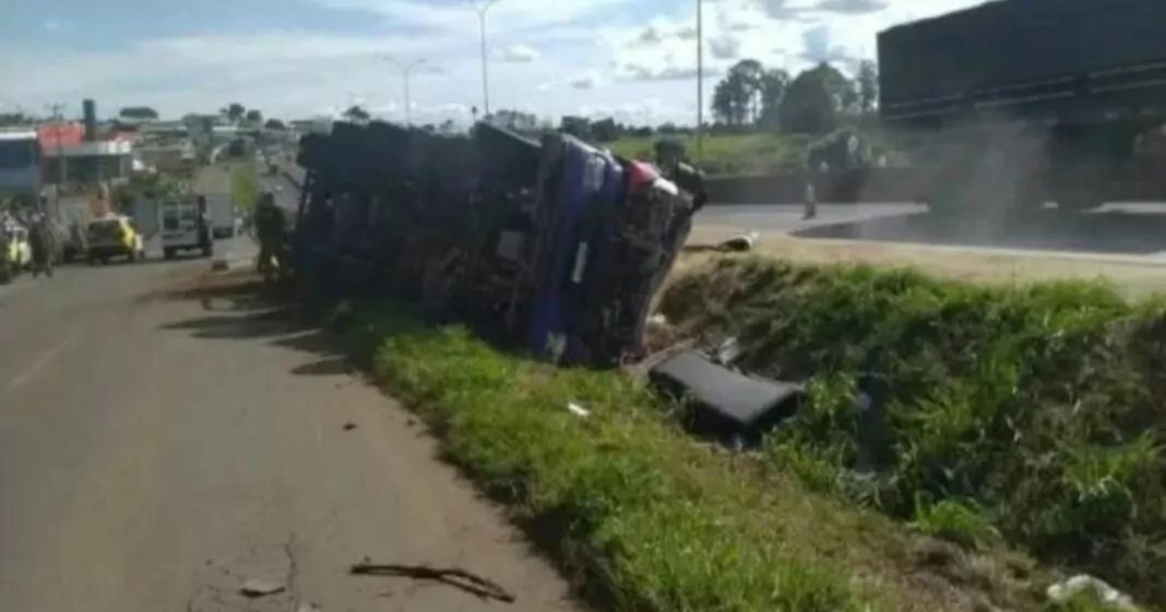 Um caminhão tombou em cima de um carro de aplicativo, na BR-227, em Guarapuava, Paraná O acidente deixou duas pessoas em estado grave, incluindo o caminhoneiro, e três mortos.