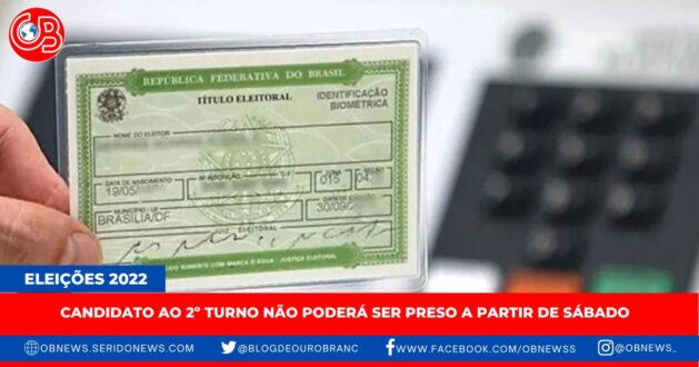 A partir do próximo sábado 15, e até 48 horas após o pleito marcado para o dia 30 deste mês, nenhum dos candidatos que disputam o segundo turno das eleições poderá ser preso, a não ser que seja pego em flagrante delito.