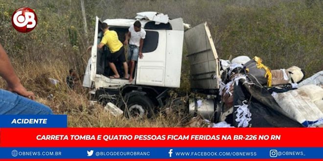 Segundo a Polícia Rodoviária Federal (PRF), uma carreta tombou na via, na altura do quilômetro 107 da BR-226, por volta das 6h15. Todas as quatro vítimas feridas estavam no veículo.