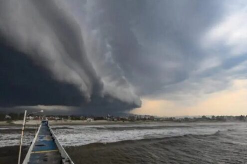 A frente fria virá acompanhada de um ciclone extratropical, que vai ficar parado por vários dias no Oceano, e por uma intensa massa de ar polar, que será a responsável por derrubar as temperaturas.