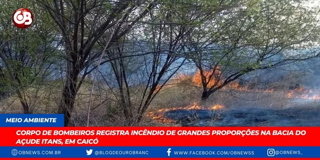 O Corpo de Bombeiros registrou um incêndio de grandes proporções na bacia do Açude Itans, em Caicó, na tarde deste domingo (12). Duas equipes foram até o local para combater as chamas que se alastraram com o vento por todos os lados.