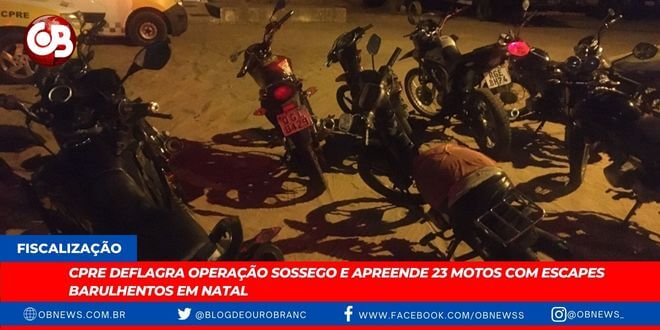 O Comando de Policiamento Rodoviário Estadual (CPRE) realizou a Operação Sossego na noite dessa quinta-feira (11) com o intuito principal de coibir a condução de motocicletas com escape causando poluição sonora em Natal. Ao todo, 23 veículos foram removidos ao depósito.