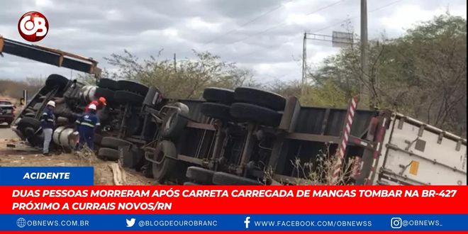 Dois homens morreram após uma carreta carregada de mangas tombar, na manhã desse domingo (12), em Currais Novos, na região Seridó do Rio Grande do Norte.