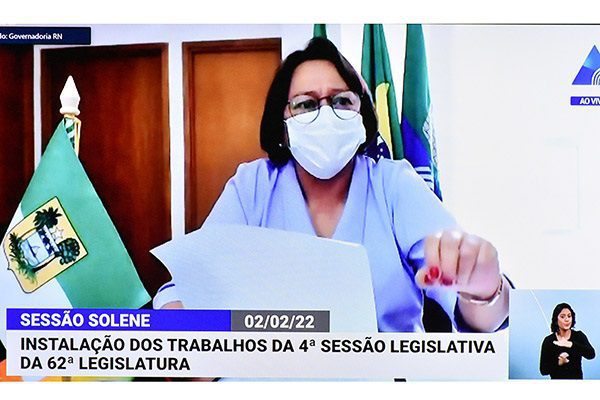A governadora Fátima Bezerra, na leitura da mensagem anual à Assembleia Legislativa, respondeu aos que acusam o governo de se limitar a pagar salários, anunciou que vai lançar um programa de assistência estudantil voltado à permanência dos alunos em sala de aula, combatendo a evasão escolar, defendeu que as questões eleitorais não paralisem as atividades de combate à pandemia e disse que o Estado vai cumprir o piso salarial dos professores, com o aumento que estabelecido na legislação.