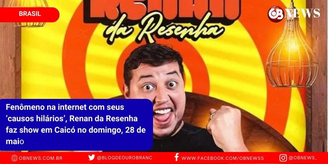 Fenômeno na internet com ‘causos hilários’ contados em vídeos, Renan da Resenha retorna a Caicó no domingo, dia 28.