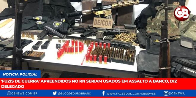 O arsenal com quatro “fuzis de guerra”, além de outras armas, explosivos e coletes balísticos, apreendido nesta quarta-feira (30) em Senador Elói de Souza, no Agreste potiguar, seria usado em um ataque a banco em São Paulo do Potengi, segundo afirmou o delegado Luciano Augusto, responsável pela investigação.