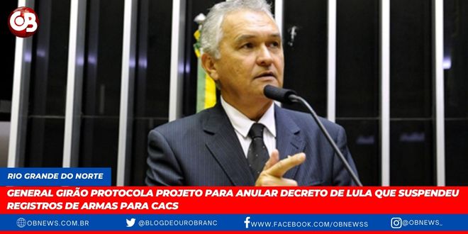 O deputado federal General Girão (PL-RN) protocolou um projeto de decreto legislativo (PDL) na Câmara dos Deputados para anular o decreto do presidente Luiz Inácio Lula da Silva (PT) que suspendeu os registros para a aquisição e transferência de armas e de munições de uso restrito por caçadores, colecionadores, atiradores e particulares.