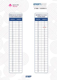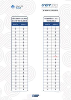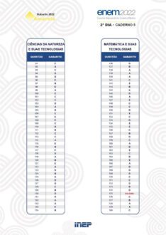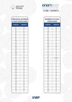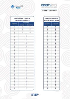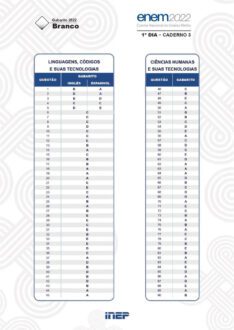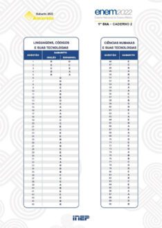 O Instituto Nacional de Estudos e Pesquisas Educacionais Anísio Teixeira (Inep) divulgou, nesta quarta-feira (23), os gabaritos oficiais do Exame Nacional do Ensino Médio (Enem) 2022. Confira as tabelas abaixo.