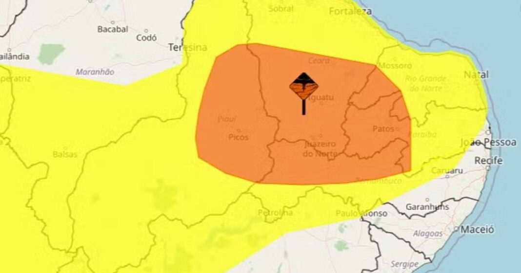 Alertas amarelo e laranja são válidos até às 10h desta terça-feira (2). Inmet emite novos alertas de chuvas intensas em todo o Rio Grande do Norte