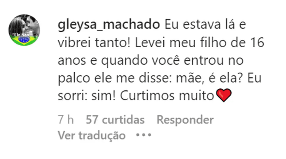 Tradução: “Ai, meu Deus! Eu estava lá. Brasil ama você!”