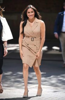 Ela optou por um closet composto por tons sóbrios e com peças suaves. Mesmo com a escolha de itens discretos, Meghan Markle não passou despercebida pela imprensa inglesa. No documentário da Netflix, a duquesa contou que um dos motivos do casal deixarem o “guarda-chuva” da família rela foram perseguição e racismo.