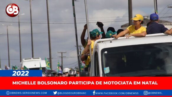 A primeira-dama do Brasil, Michelle Bolsonaro, participa, na manhã deste sábado (15), de uma motociata na zona Norte de Natal e é acompanhada por centenas de motos no evento “Mulheres com Bolsonaro”.