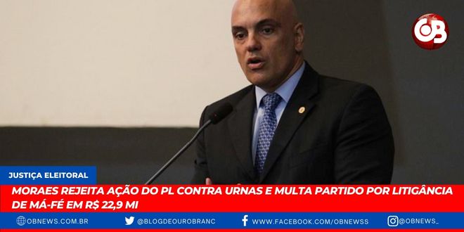 Moraes rejeita ação do PL contra urnas e multa partido por litigância de má-fé em R$ 22,9 mi