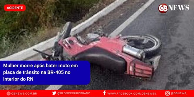 Uma mulher de 25 anos morreu após colidir a moto que pilotava contra uma placa de sinalização às margens da BR-405, no fim da madrugada de domingo (11) no Alto Oeste potiguar.