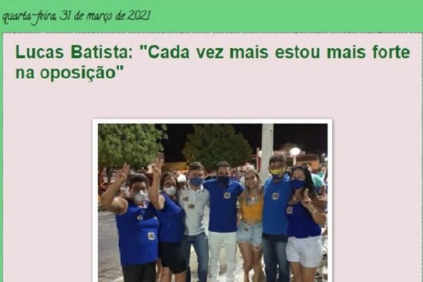 O vereador Lucas Batista publicou em um Blog local o mesmo texto enviado ao OBNews através de conversa no aplicativo WhatsApp, no texto e áudios compartilhado em rede social o vereador acusa o Blog OBNews de ser ligado ao sistema do Prefeito Samuel Souto (PL). O vereador Lucas Batista também diz que a matéria publicada pelo Blog OBNews com o titulo “Reviravolta política vereador Lucas Batista se aproxima da situação” , é pura especulação e sem fundamentação.