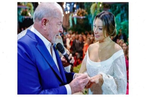 O casamento de Lula com Janja está sendo realizado esta noite em São Paulo. A primeira imagem do vestido de noiva já circulou nas redes sociais. Horas antes de subir ao altar, Janja foi às redes para declarar seu amor ao petista. “Ninguém mais feliz que eu e você. Hoje é dia de celebrar o nosso amor. Que o vento venha nos abençoar e carregar todo mal para longe de nós!”, declarou a noiva.