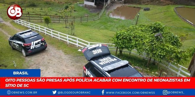 Oito homens foram presos em flagrante pela Polícia Civil de Santa Catarina suspeitos de integrar uma célula neonazista interestadual. O grupo estava reunido em um sítio na cidade de São Pedro de Alcântara, na Grande Florianópolis, e participava de um encontro anual da célula.