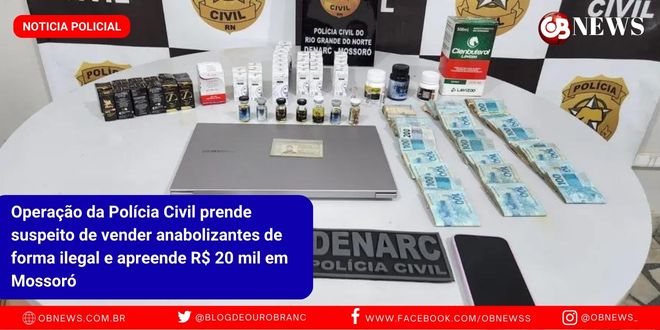 Uma operação da Polícia Civil nesta quarta-feira (28) resultou na prisão em flagrante de um homem suspeito de vender ilegalmente anabolizantes no município de Mossoró, na Região Oeste do Rio Grande do Norte.