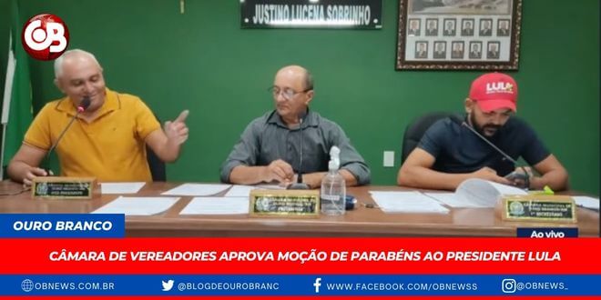 Na sessão de ontem (31), a Câmara de vereadores de Ouro Branco aprovou moção de parabéns para o presidente eleito Luiz Inácio Lula da Silva pela vitória obtida nas urnas nas eleições do último domingo (30).