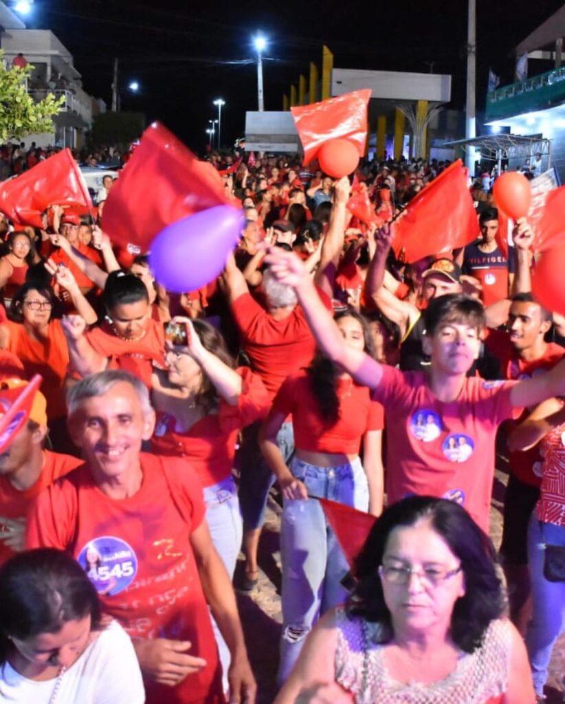 As pessoas aguardavam nas esquinas com bandeiras, vestidos de vermelho e fazendo gestos de carinhos para ex-prefeita Fátima Silva, confirmando a escolha pelos candidatos da “DOUTORA” Júlia e Nelter para continuar ajudando o município Ourobranquense. Os “Amigos da Doutora“, liderados pela ex-prefeita e Fátima Silva, o vice-prefeito Justino do Cartório, Vereadores, Josué Josedec, Lucas Batista e Marcos Costa, os empresários Denis Rildon e Evilacio Freire, realizaram a maior concentração política do ano.