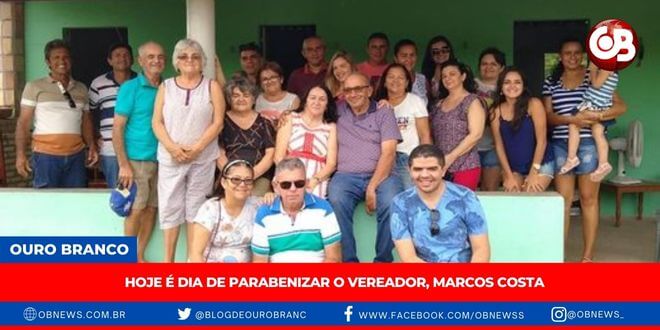 O mandato cidadão do vereador ourobranquense está em destaque no município, autor de diversas indicações, requerimentos e projetos aprovados. O edil tem uma participação ativa nas sessões da câmara, apresentando pautas de interesse da população de Ouro Branco-RN, Marcos Costa, hoje está comemorando o seu 43º aniversário.