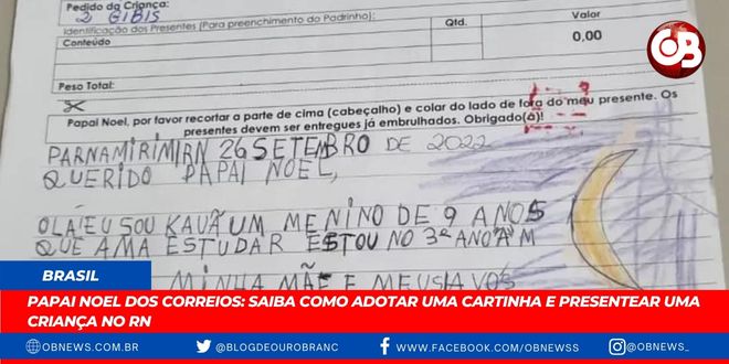 A tradicional campanha “Papai Noel dos Correios” começou no Rio Grande do Norte e já há cartas disponíveis para adoção de qualquer pessoa (veja exemplos de cartas mais abaixo). A campanha segue até o dia 7 de dezembro.