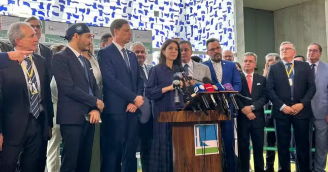 Deputados, senadores e representantes dos 17 setores da economia intensivos em mão de obra defenderam nesta quarta-feira 13 a derrubada integral do veto presidencial ao projeto que prorroga, até 2027, a desoneração da folha de pagamento de empresas desses setores. O ato foi realizado na Câmara dos Deputados.