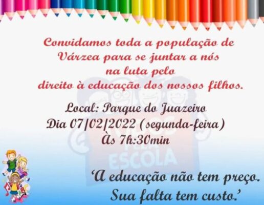 Uma manifestação de pais e alunos pela volta às aulas presenciais, escolas dignas e melhorias na educação do município ocorreu na manhã desta Segunda, 7, em Várzea-PB.