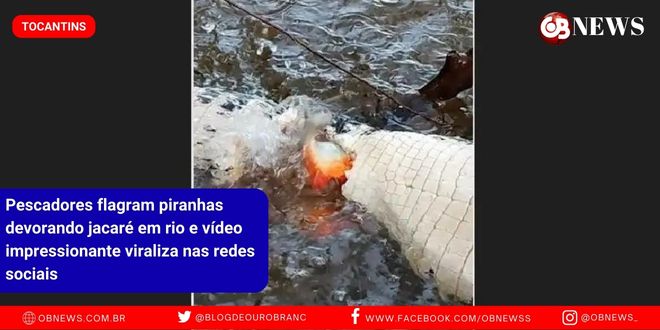 Um grupo de amigos filmou um jacaré sendo devorado de dentro para fora por um cardume de piranhas, no Tocantins. O flagrante aconteceu no fim de junho durante uma viagem de pesca esportiva pelo rio Javaés, na região oeste do estado, próximo ao Centro de Pesquisas Canguçu.