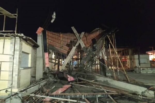 A parte da estrutura que desabou estava sendo concretada, e era suportada por escoras de madeira, que não suportaram o peso.