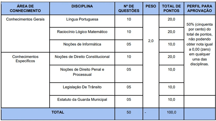 - Teste de aptidão física, de caráter eliminatório para o cargo de Guarda Municipal;