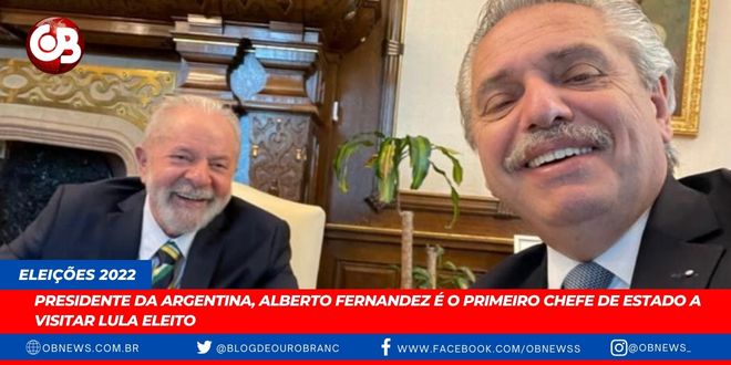 O presidente da Argentina, Alberto Fernandez, será o primeiro chefe de Estado a visitar Lula (PT) já como presidente eleito. O encontro acontece nesta segunda-feira (31), um dia após o Tribunal Superior Eleitoral (TSE) decretar a vitória do petista com 50,9% da preferência dos brasileiros, em um total de 60.345.999 votos. Derrotado, Jair Bolsonaro (PL) obteve 58.206.354 votos, ou 49,1% do total.