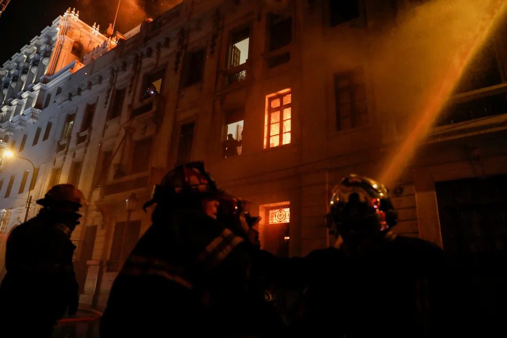 Um prédio da capital que fica próximo da praça San Martín pegou fogo durante o confronto, mas autoridades ainda não informaram o que provocou o incêndio.