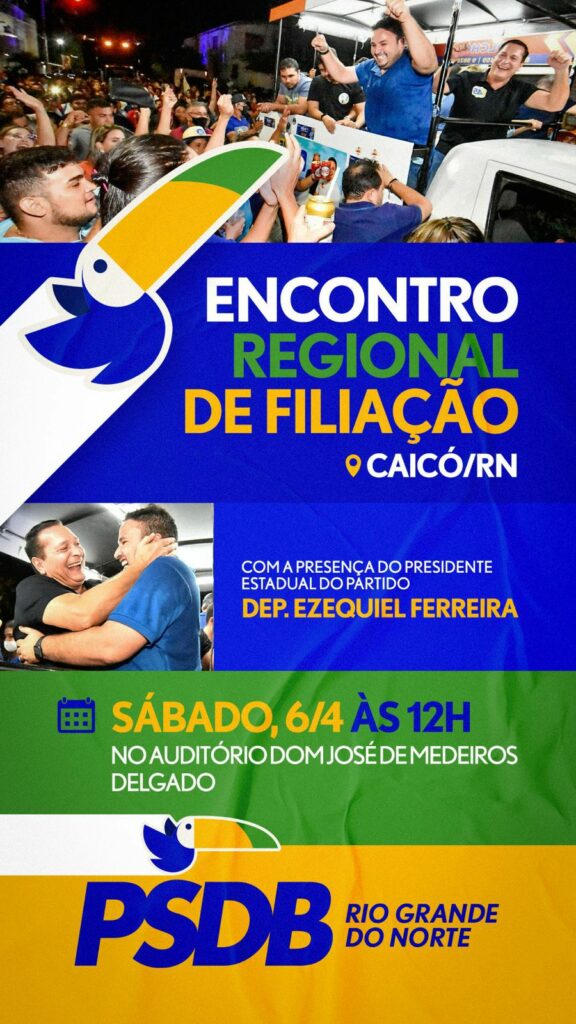 O PSDB Potiguar vai promover neste sábado (6), um Encontro Regional de Filiações.