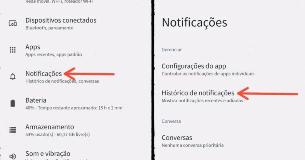 com a função “Histórico de notificações” ativada, o usuário do smartphone Android consegue acessar todas as notificações recentes de seus aplicativos, incluindo as mensagens do WhatsApp.