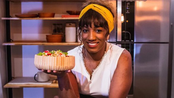 A salada de feijão com coentro é uma opção fácil, leve e sem carne para as ceias de Natal e Ano-Novo. Saiba como fazer a receita da chef Aline Guedes!