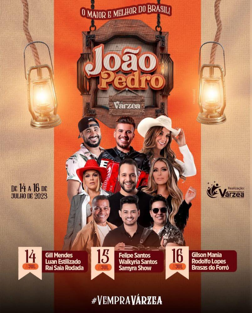 Com duração de cinco dias, de 12 a 16 de julho, o João Pedro 2023 contará com uma programação diversificada, que inclui shows musicais em dois ambientes distintos: o tradicional Palhoção do Povo e o amplo Parque do Juazeiro. Além disso, os moradores e visitantes poderão desfrutar do João Pedro Cultural, circuitos de forró nas zonas urbana e rural, o animado Arraiá da Assistência Social e a encantadora Quadrilha da Juventude.