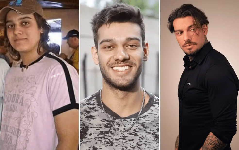 O embaixador Gusttavo Lima foi um dos que mais mudou o visual ao longo dos anos. Na primeira foto, ainda na adolescente, tinha cabelos loiros e compridos. Depois, começou a carreira com os cabelos curtos. Depois, apostou no penteado espetado do sertanejo universitário. Atualmente, esbanja um corpo musculoso e usa roupas sociais.